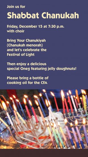 « All Events This event has passed. Shabbat Chanukah December 15, 2017 @ 7:30 pm - 9:00 pm « Tot Shabbat! Torah Portion Mikeitz » Add to calendar Google Calendar iCalendar Outlook 365 Outlook Live Details Date: December 15, 2017 Time: 7:30 pm - 9:00 pm Venue Beth Haverim Shir Shalom 280 Ramapo Valley Road Mahwah, NJ 07430 United States + Google Map Phone 201-512-1983 View Venue Website