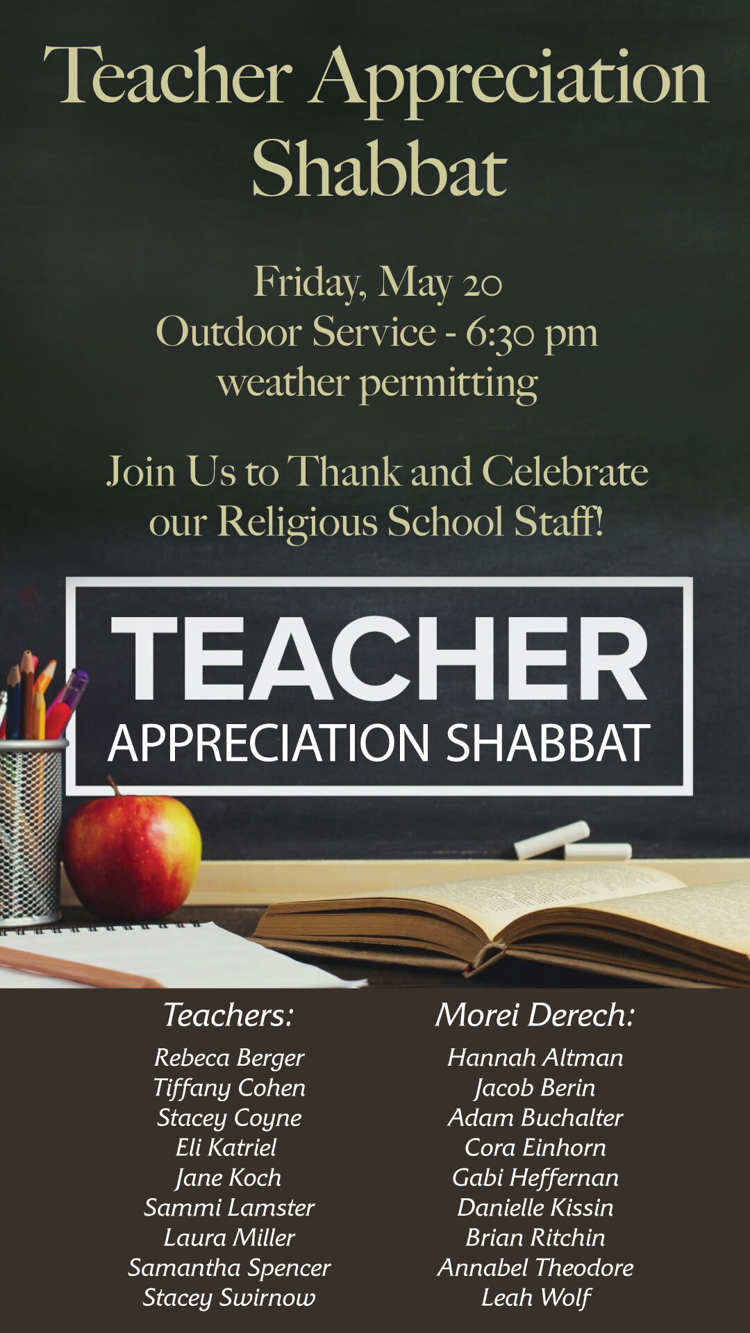 Shabbat Evening service – Teacher Appreciation Shabbat