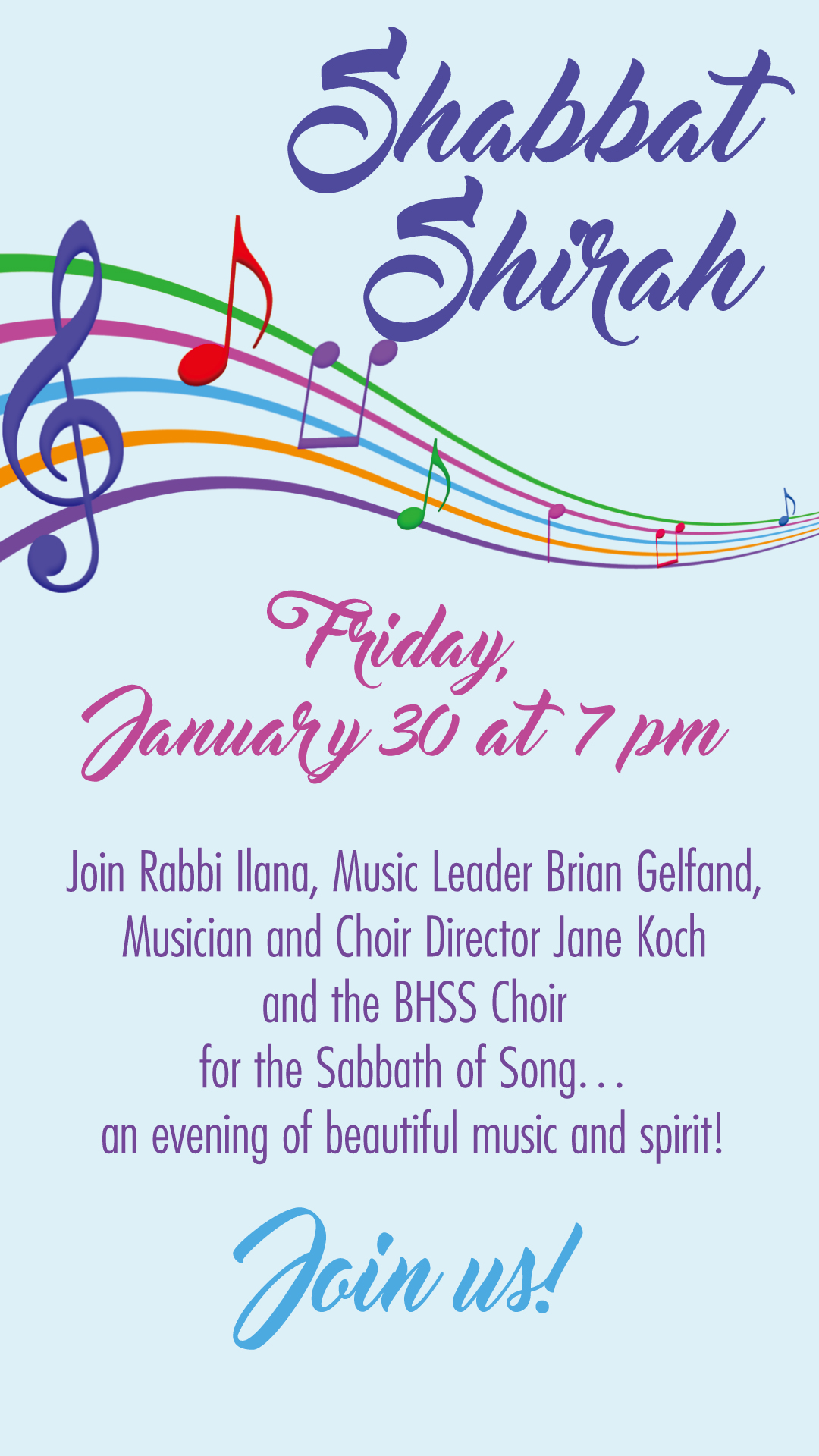 « All Events Event Series: Shabbat Evening Service Shabbat Evening Service – Shabbat Shirah January 30, 2026 @ 7:00 pm - 8:00 pm « Shabbat Evening Service Shabbat Family Service » Add to calendar Google Calendar iCalendar Outlook 365 Outlook Live Details Date: January 30, 2026 Time: 7:00 pm - 8:00 pm Series: Shabbat Evening Service Venue Beth Haverim Shir Shalom 280 Ramapo Valley Road Mahwah, NJ 07430 United States + Google Map Phone 201-512-1983 View Venue Website