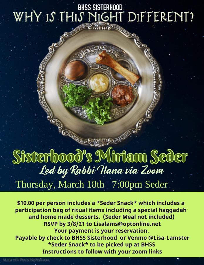 « All Events This event has passed. Sisterhood Miriam Seder March 18, 2021 @ 7:00 pm - 9:00 pm « Israel’s Strategic Position in the Middle East with Rabbi Joel Schwartzman Shabbat Evening Service » Add to calendar Google Calendar iCalendar Outlook 365 Outlook Live Details Date: March 18, 2021 Time: 7:00 pm - 9:00 pm Organizer Lisa Lamster Email lisalams@optonline.net Venue Beth Haverim Shir Shalom 280 Ramapo Valley Road Mahwah, NJ 07430 United States + Google Map Phone 201-512-1983 View Venue Website