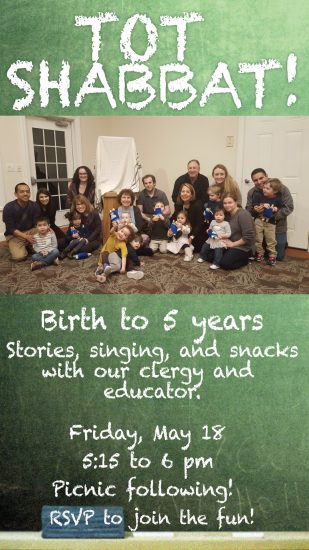 Please join us for a picnic (bring your own dinner, we’ll supply drinks and chips) out on the lawn directly after Tot Shabbat! Bring blankets and we’ll eat outside or (if it’s raining) on the floor inside!