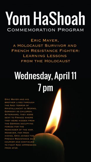 « All Events This event has passed. Yom HaShoah Commemoration Program April 11, 2018 @ 7:00 pm - 8:30 pm « No School Adult Choir » Add to calendar Google Calendar iCalendar Outlook 365 Outlook Live Details Date: April 11, 2018 Time: 7:00 pm - 8:30 pm Venue Beth Haverim Shir Shalom 280 Ramapo Valley Road Mahwah, NJ 07430 United States + Google Map Phone 201-512-1983 View Venue Website