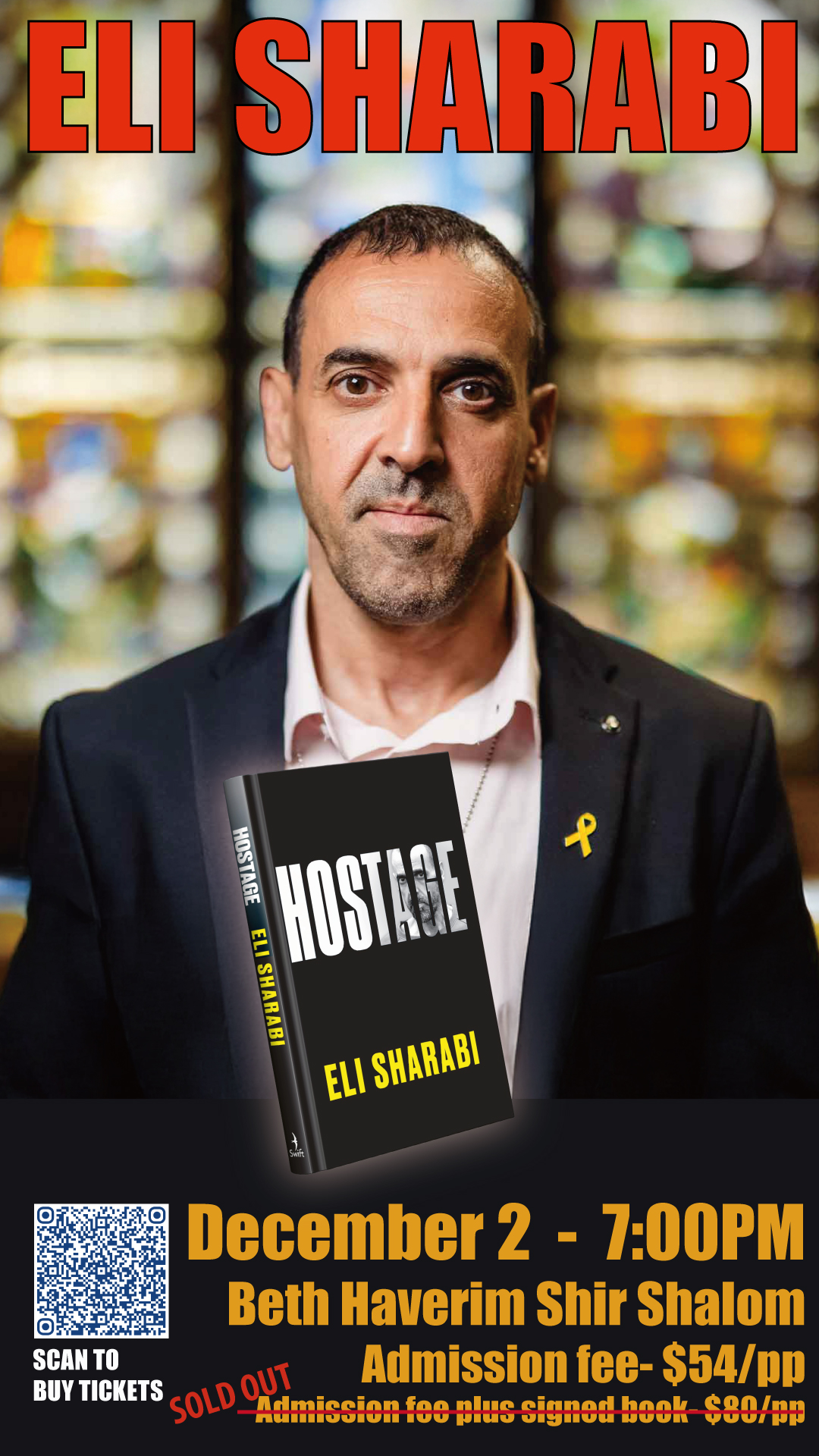 - We are honored to present a very special evening with Eli Sharabi, the October 7 Israeli hostage who has written a jarring book about his experience called “Hostage.” This is a rare opportunity to hear his story first hand on Tuesday, December 2 at 7:00 pm at BHSS.Tickets required. Get them here: Eli Sharabi